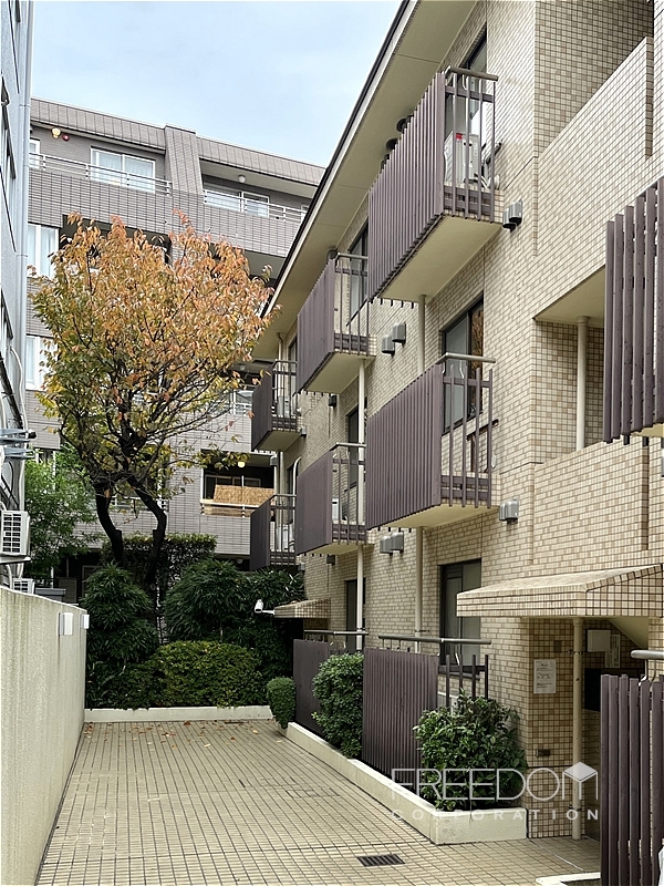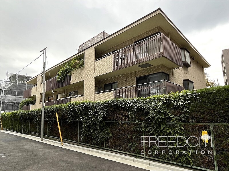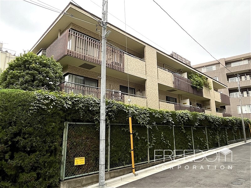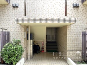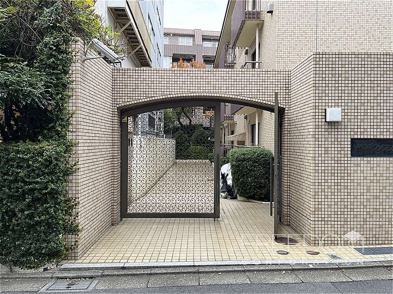 王子不動産分譲、竹中工務店施工のマンションで、タイル貼りの端正な外観が印象的です。1984年3月築の4階建、総戸数12戸という低層・小規模ならではの安心感が感じられます。オートロックやエレベーターはありませんが、敷地入口には門扉があり、プライベート感を感じられるつくりになっています。