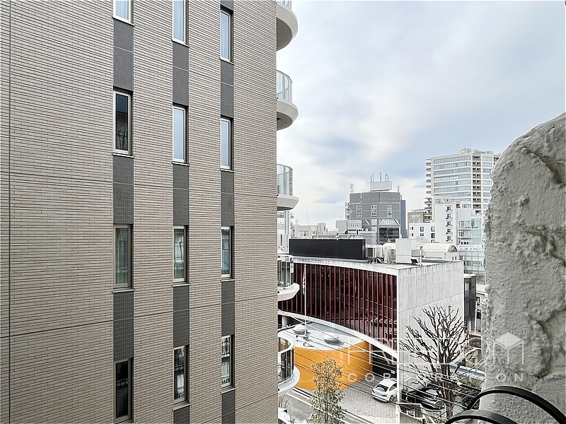 バルコニーの正面には建物があり、以前に比べると閉塞感は否めませんが、一定の距離は保たれています。視線の先には、鮮やかなイエローと曲線が目を引く駐日ブラジル大使館が見え、外苑前らしい穏やかな空気感が感じられました。