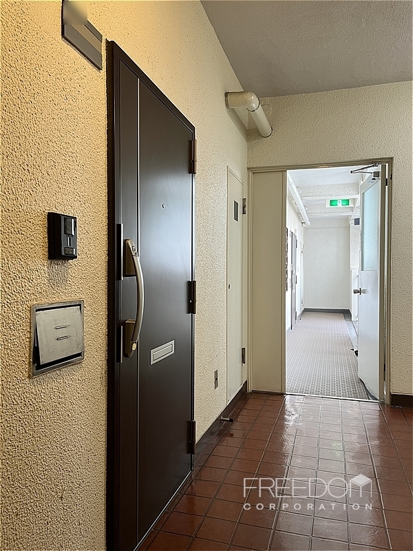 エレベーターが一基あり、廊下は内廊下を基本としつつ、一部のお部屋は外廊下になります。