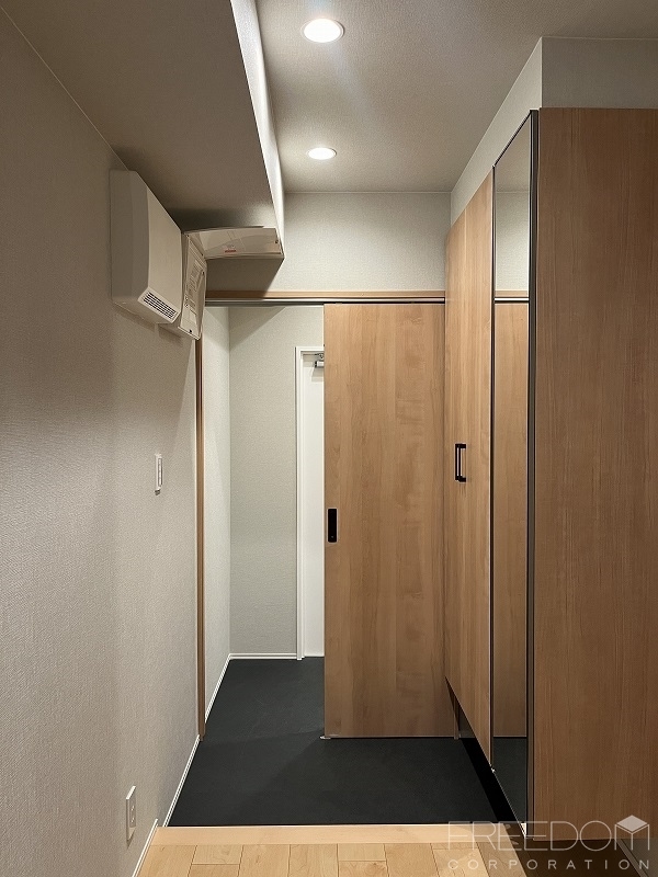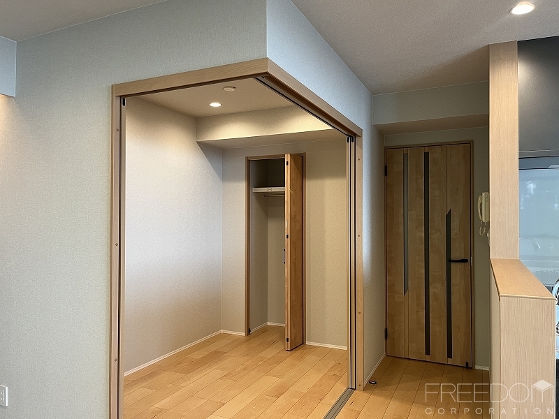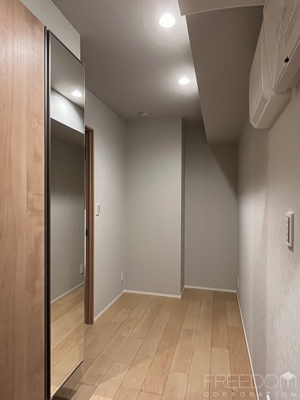 玄関入ってすぐの約3.5帖のサービスルームもこのお部屋の特徴。土間部分が広く取られ、汚れが気になるものなども出し入れがしやすそう。シューズボックスに全身鏡もあるので、ウォークスルークローゼットのような使い方も良さそうです。