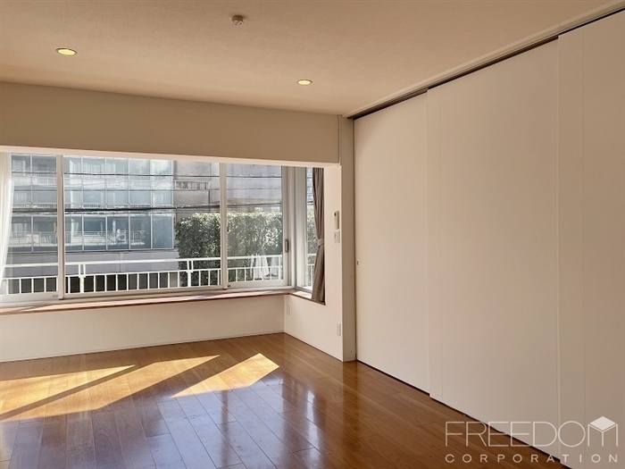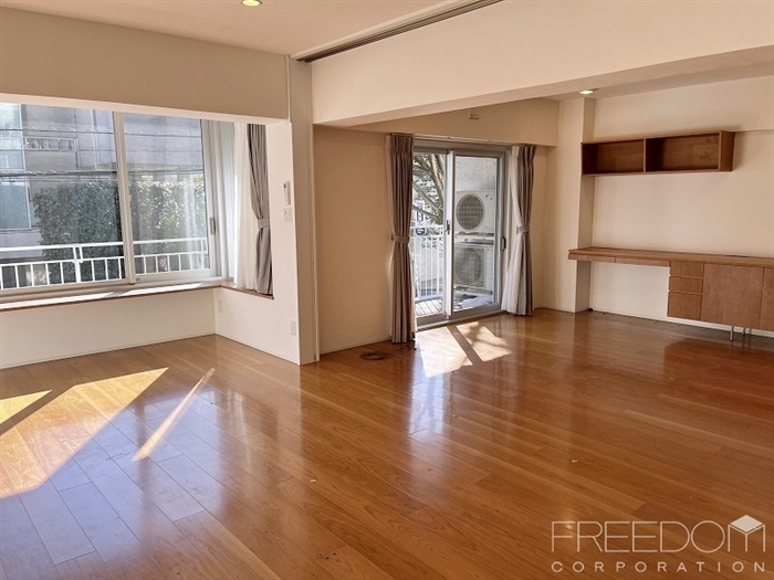 白金三光坂の高台にあり、緑豊かな住環境に佇むこちらのマンションの2階部分が販売開始となりました。専有面積はゆったりとした106.58㎡。日当たりの良い明るいお部屋です。