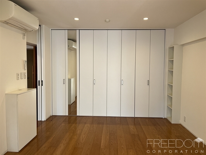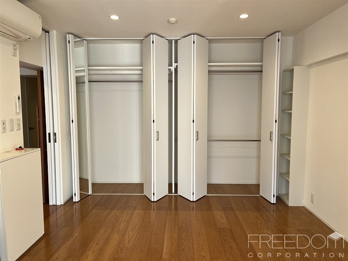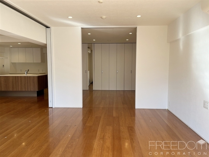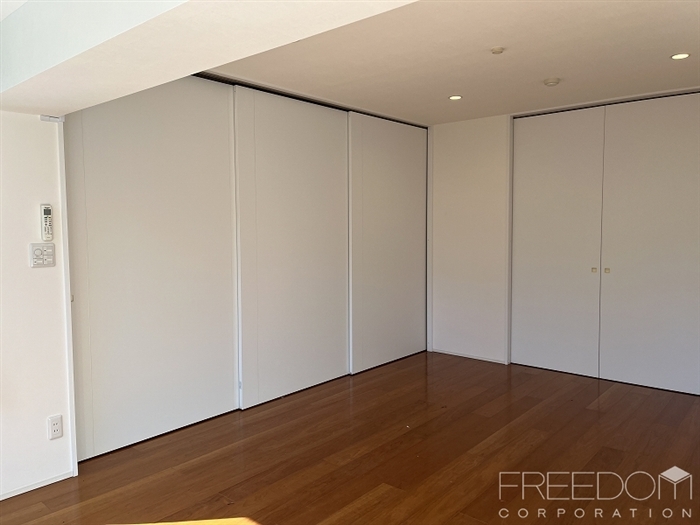 リビングに隣接した約8.8帖の寝室。天井まである大型のクローゼットを備えた頼もしい収納力が魅力です。ダイニングとリビングの双方からアクセス可能な回遊性のある間取となっており来客時以外は建具を開放しておけば、閉塞感のない伸びやかな住空間としてもお使いいただけます。