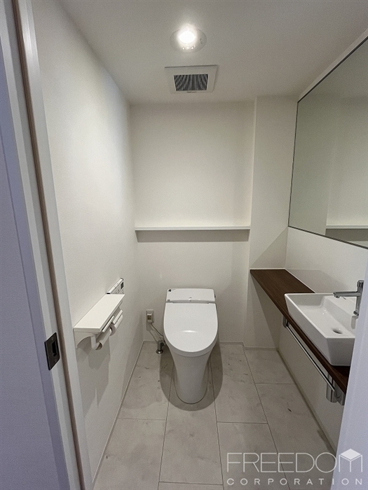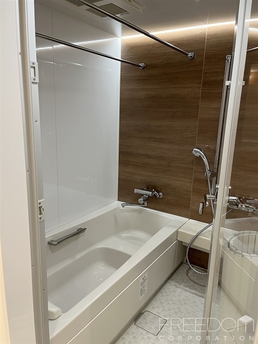 約17.1帖のダイニング・キッチンと、それに隣接する約11.7帖のリビング。繋げることで約28.8帖ものゆとりのあるLDKが広がります。一等地にありながら、これほどのゆとりを独占できるのは100平米超の住戸こその魅力です。さらにリビング、ダイニングにはそれぞれ床暖房も完備。階下は駐車場なので足音などを気にしなくてよいのも嬉しいポイントです。