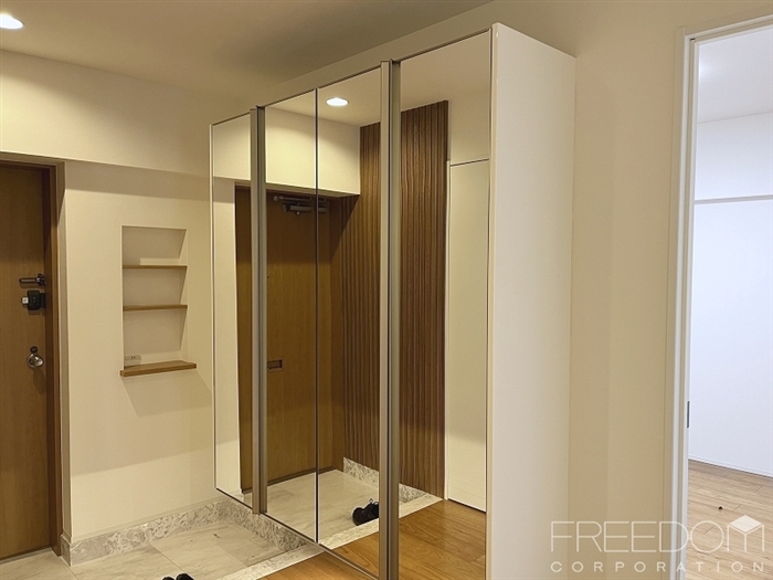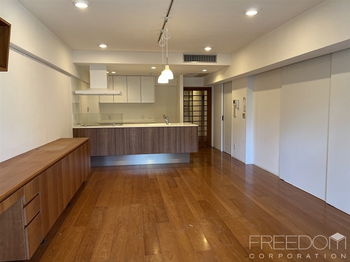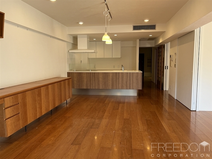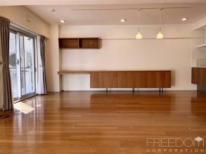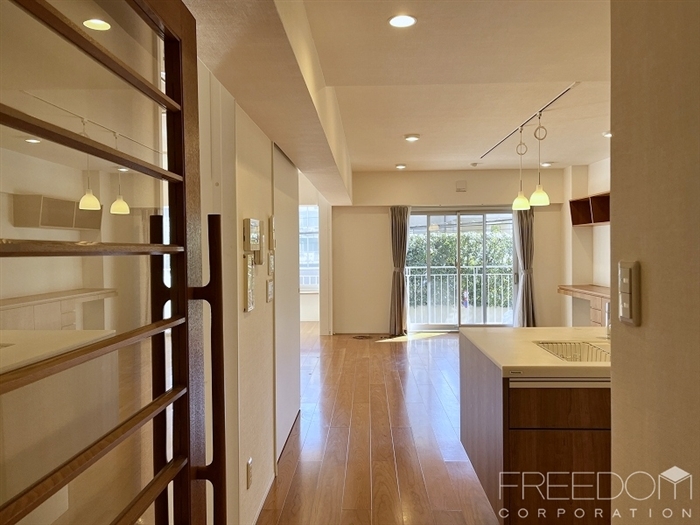 住戸内全体は統一して明るい白と飴色の木をベースとしたお部屋づくりがなされており「白金マンションらしい」爽やかな中に温かみを感じる上品な内装のお部屋だと感じました。