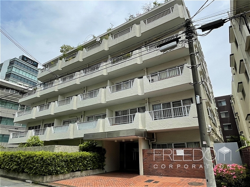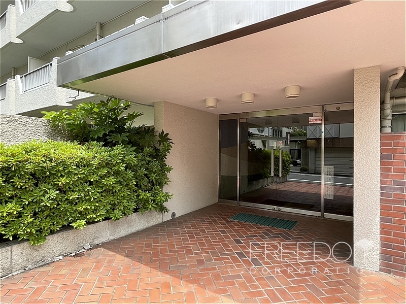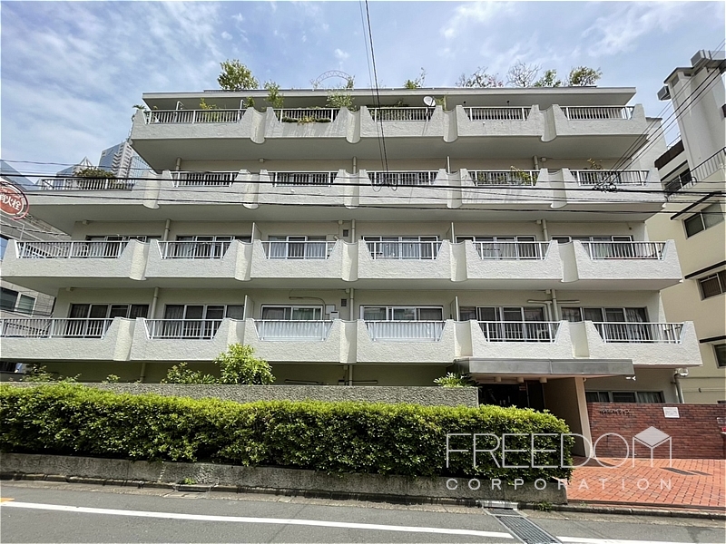 1974年4月に竣工した6階建で、高級マンション「ホーマットシリーズ」で知られる興和不動産の旧分譲、施工は大林組が担当した信頼のタッグによる建物です。70年代のレトロモダンな趣きをまとったフォルムと、植栽やガーデニングの緑が映える爽やかな佇まいが印象的です。