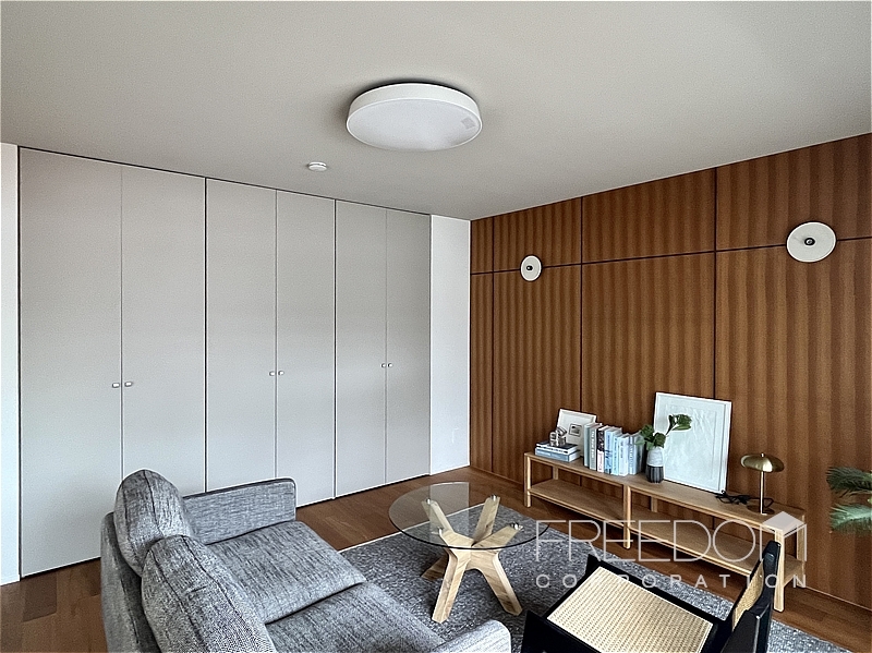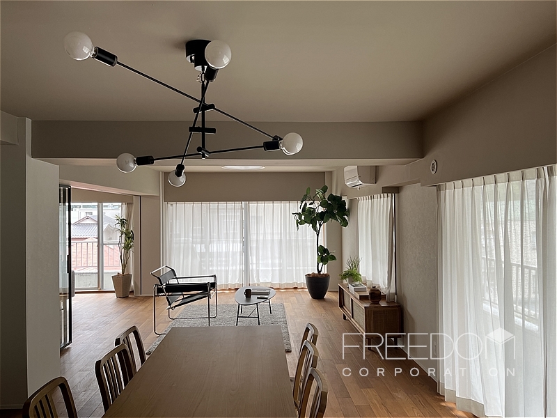 2025年9月にリノベーション工事を終えた室内は、ミッドセンチュリーをテーマにしたモダンで温かみのあるデザインです。