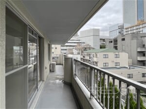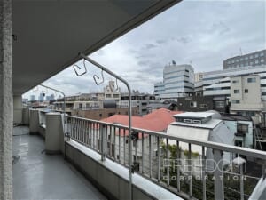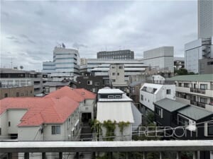 ダイニング側のバルコニーは北西向き。こちらは正面の建物からの視線がやや気になるかもしれませんが、一定の距離が確保されているため、圧迫感や閉塞感は感じませんでした。