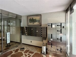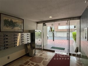 縦長タイルで彩られた装飾壁や大理石貼りの廊下、木製の郵便受けなど、レトロ好きにはたまらない共用空間。