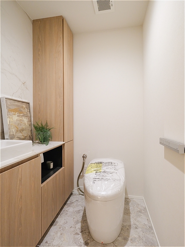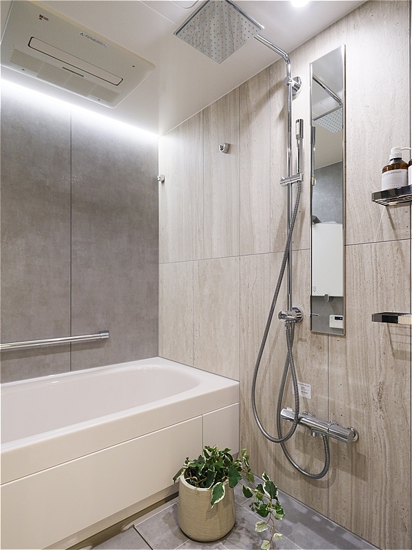 浴室には浴室換気乾燥機と追焚き機能、トイレには手洗いカウンターと収納を設け、暮らしに寄り添った設備が整っています。