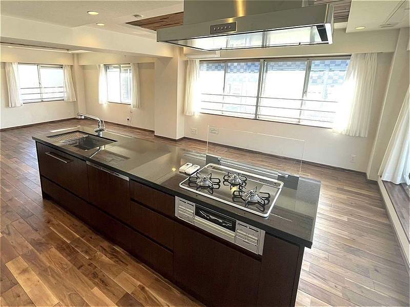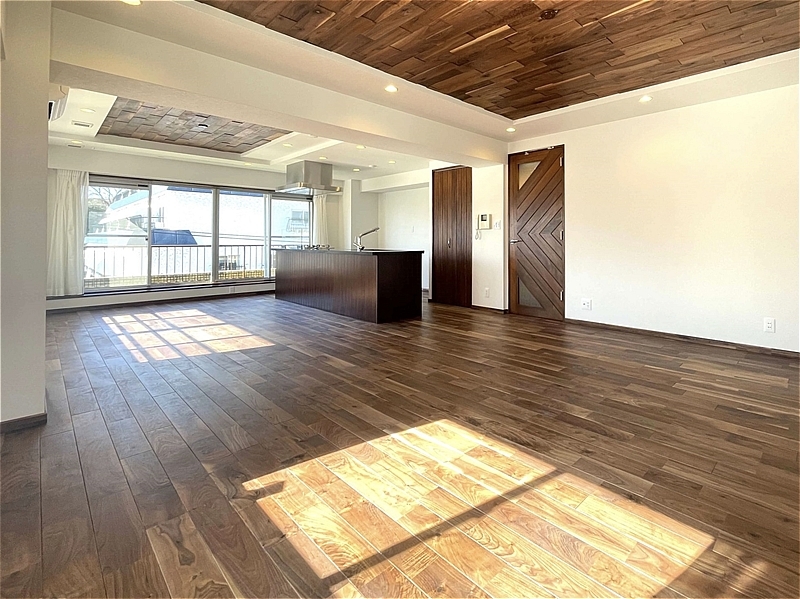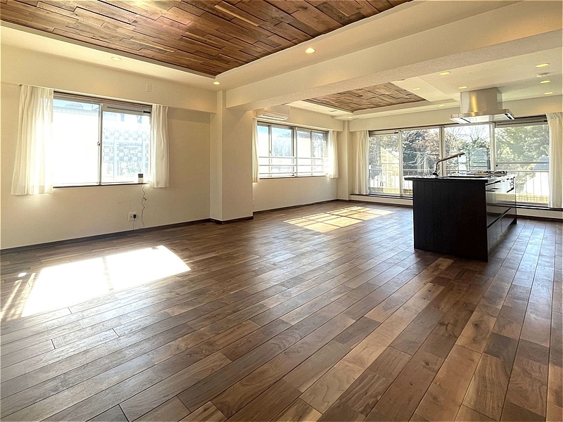 専有面積は約97㎡のゆとりある広さ。新規リノベーション済みの室内は、角部屋ならではの多面採光により、陽当たり・風通しともに良好です。