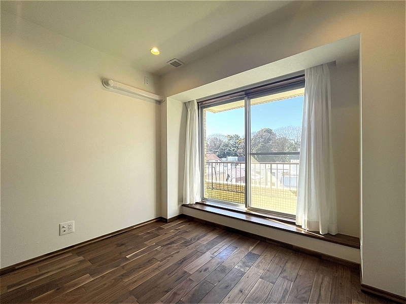 洋室2は約6.0帖。掃き出し窓からは自然光とともに明治神宮の緑を望み、帖数以上の開放感を感じられます。クローゼットも備わっており、独立性の高い居室として快適に過ごせます。