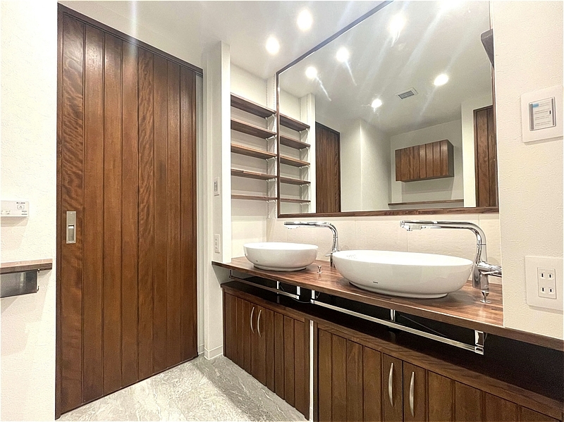 1620サイズのバスルームやツインボウルの洗面台、2か所に設けられたトイレなど、水回りもゆとりある設計です。玄関にはシューズインクローゼットを備えており、収納面も整っています。