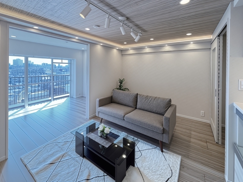 システムキッチン新規交換(食洗器・浄水器一体型水栓付)/ユニットバス新規交換(浴室乾燥機付)/建具新規交換/エアコン新規設置(リビング)/クロス貼替/フローリング張替/TV付モニターインターホン新規取付/洗面化粧台新規交換/温水洗浄機能付トイレ新規交換/ダウンライト新規設置/洗濯パン・水栓新規交換/ルームクリーニング等