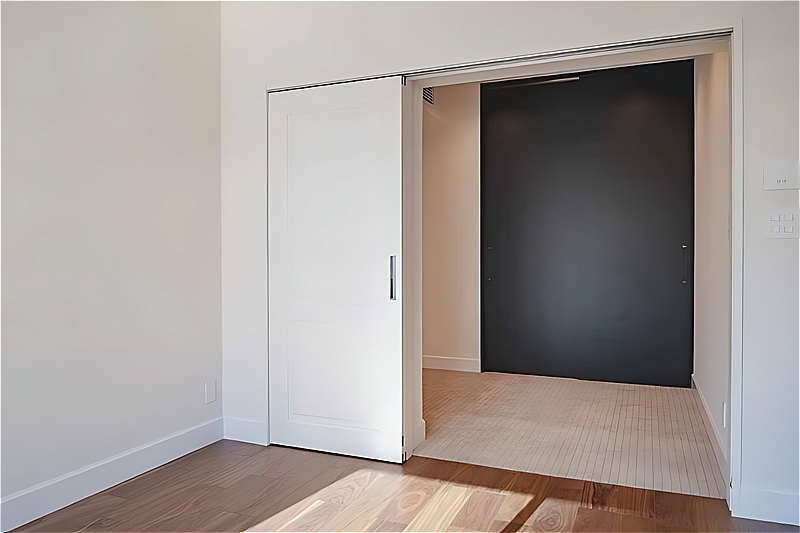 LDの奥に位置する洋室。足元はカーペット敷きで、約4.0帖という広さも相まって落ち着いた雰囲気です。コンパクトながらクローゼットを備え、マットブラックの扉が空間を引き締めるアクセントになっています。