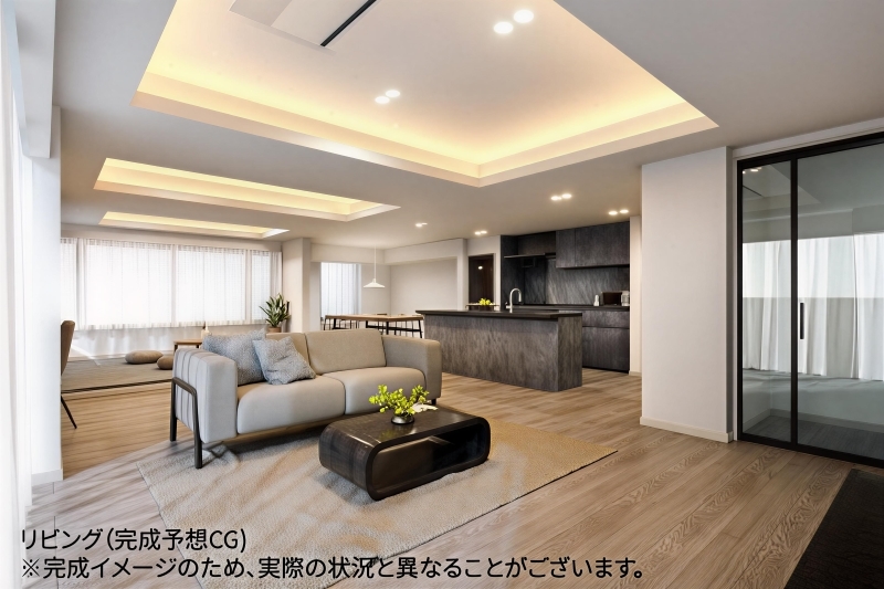 LDKは約35.5帖。都心のマンションでは希少な開放感あふれる広々とした空間です。洋室も4部屋ありますので、ご家族それぞれの個室や、ワークスペースなど多目的にご活用いただけます。