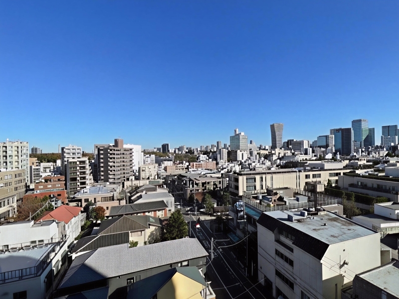 全室に窓があり、採光・通風ともに良好。山手通りとは反対側の東向きのため、テラスからは富ヶ谷や神山町の閑静な住宅街を見晴らす、穏やかな眺望が広がります。