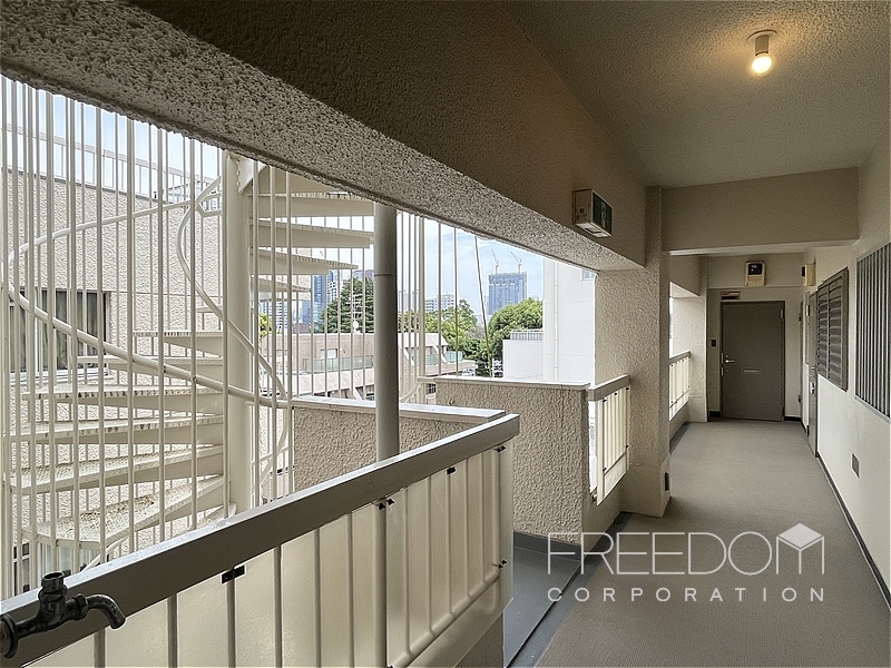エレベーターは1基設置されています。基本は内廊下ですが、お部屋によっては一部外廊下となります。上層階の外廊下からは、東京タワーの眺めも楽しめます。