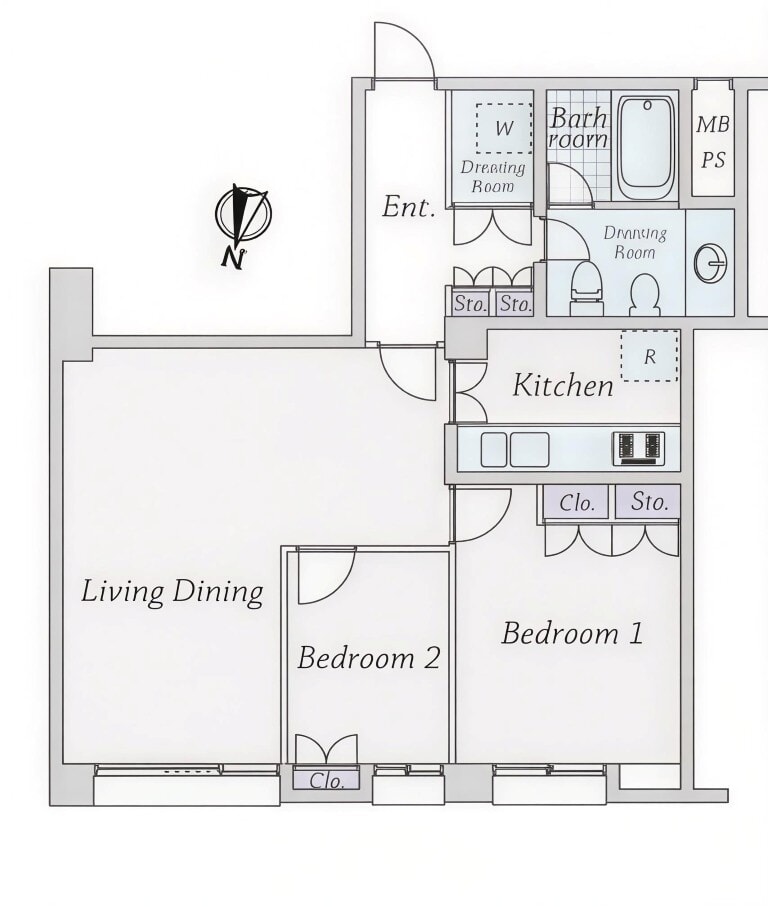 専有面積約90平米のゆったりとした2LDKの間取りです。