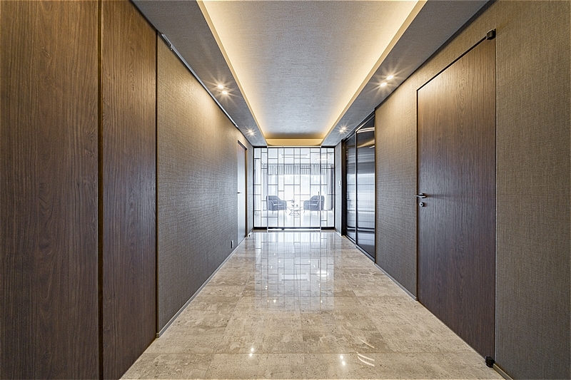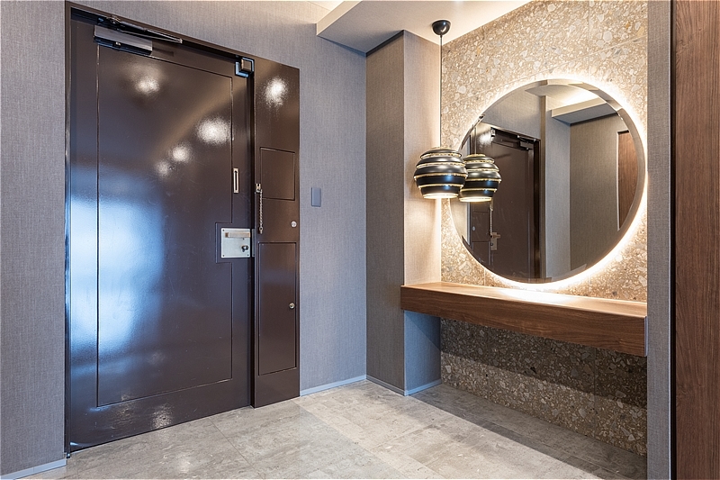 共用廊下はホテルライクな内廊下設計。クラシックホテルのような重厚感と趣が漂います。