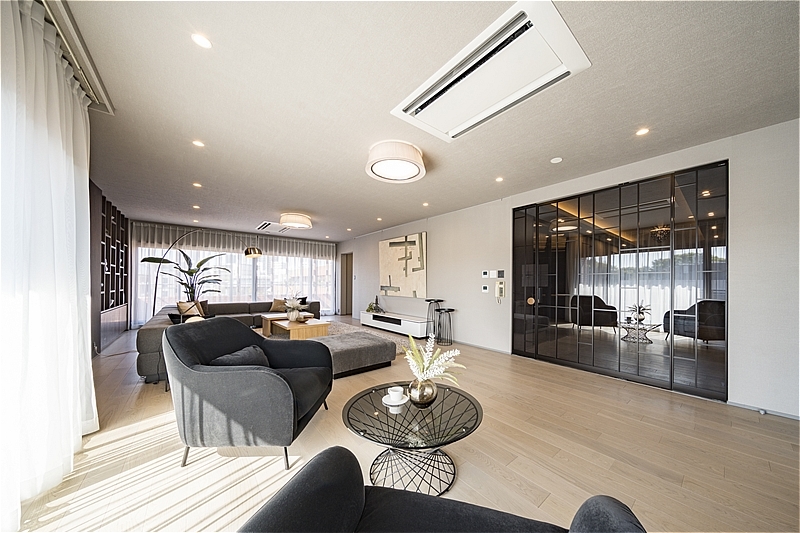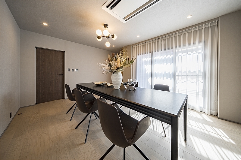 ここにも床暖房と天井カセットエアコンを標準装備。機能面にも妥協がなく、季節を問わず、心地よく食卓を囲めそうです。