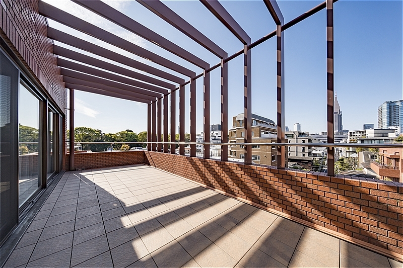 バルコニーに面した掃き出し窓と腰窓から明るい日差しが注ぎ、陽だまりでゆったりと寛ぎたくなります。こちらのバルコニーもゆとりある広さを確保。前方には明治神宮の深い緑を借景にする、清々しい眺望が広がります。