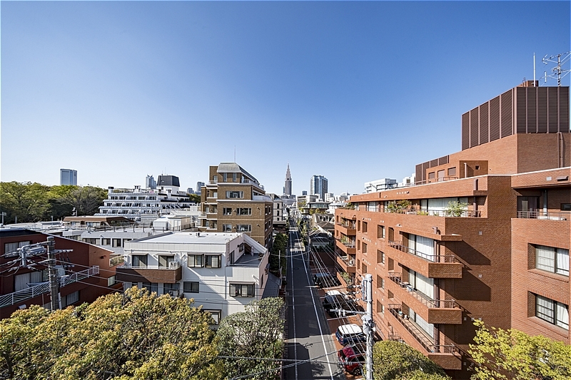 明治神宮の緑が少し見える西向き、抜けた眺望で希少性の高いお部屋です。