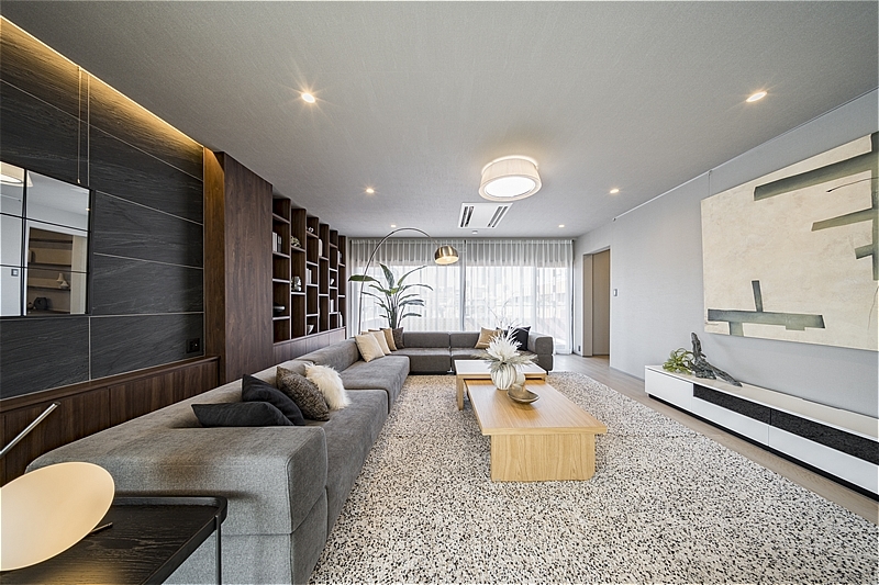 専有面積は約251.13㎡。約51帖ものLDKを筆頭に、圧巻のスケールを誇る住空間は、細部まで意匠を凝らした新規フルリノベーション済みの4LDK+DENです。