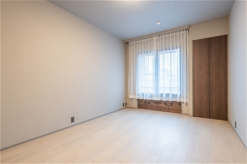 柱や梁の出っ張りが少ない整形空間のため、家具の配置がしやすく、レイアウトの自由度が高いのも特徴。お子様のお部屋としてはもちろん、書斎やゲストルームなど、用途を選ばない端正な空間です。