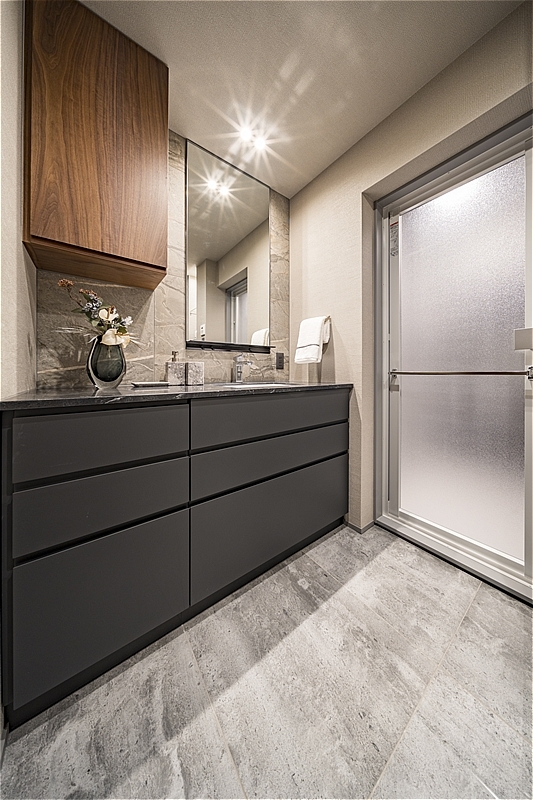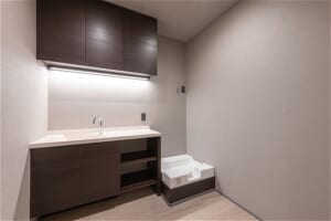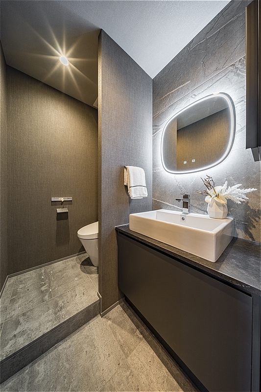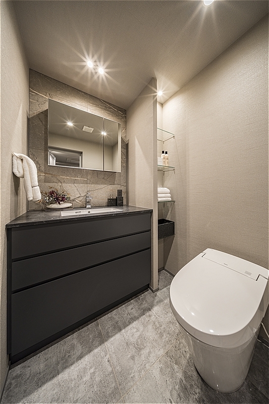 トイレは玄関付近にも別途設けられており、ゲスト用とプライベート用でスマートな使い分けが可能。250㎡超の邸宅にふさわしい、プライバシーへの細やかな配慮が息づいています。
