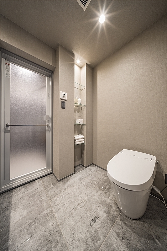 お部屋専用の洗面室、トイレ、浴室が独立して備わるほか、天井カセットエアコンや床暖房も装備。ホテルのスイートルームを思わせる設えが、ワンランク上の上質な日常を彩ります。