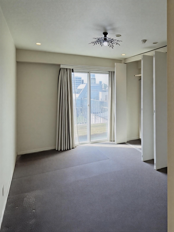 東向きの窓の向こうには、隣接する劇場「EX THEATER ROPPONGI」の壁面緑化が見えます。建物との距離が確保されているので、人目はあまり気にならないかと思います。