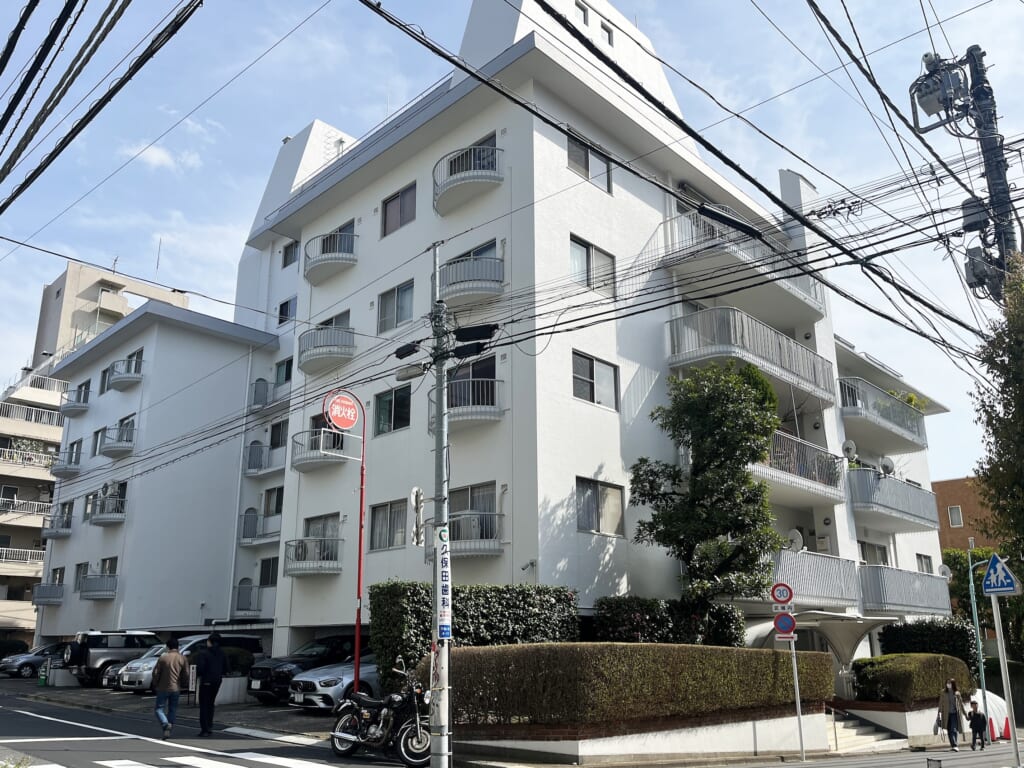 住友不動産旧分譲による1970年5月築の8階建で、真っ白な外壁に曲線を帯びた可愛らしいバルコニーが印象的です。角地のため開放感があり、特に上層階は陽当り・眺望に恵まれています。駐車場やトランクルーム、ペット飼育などの条件面も整っています。