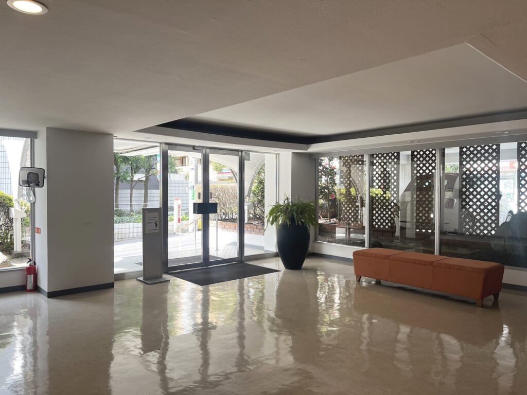 オートロックはありませんが、周辺環境も含めて穏やかな雰囲気があり、安心して暮らせそうな印象です。内廊下設計に加え、隣り合う住戸は3世帯ほどと、プライベート感のあるつくり。共用部は清潔に保たれており、木製の郵便受けなどもヴィンテージマンションらしい味わいがありました。