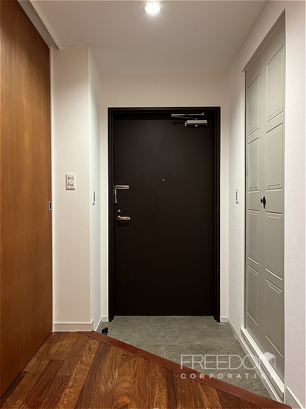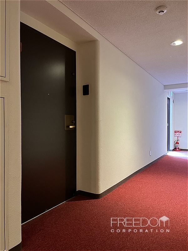 玄関ドアは、ヴィンテージマンションらしい貫禄を感じさせる重厚な造り。真紅のカーペットが敷かれた内廊下も特別感があり、クラシックホテルのような趣が漂います。