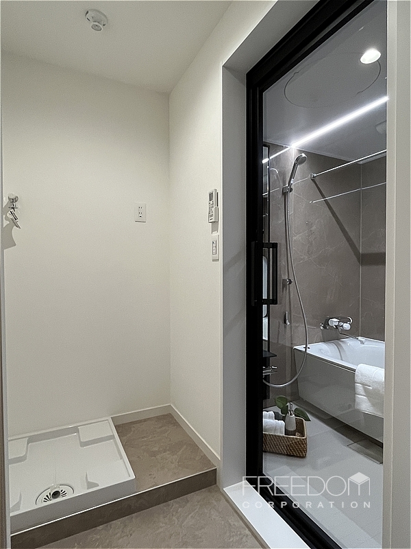 洋室の向かい側には、ランドリールームと浴室、その隣にトイレが並びます。ユニットバスは1416サイズとゆとりがあり、トイレも一般的な仕様より広めの設計。