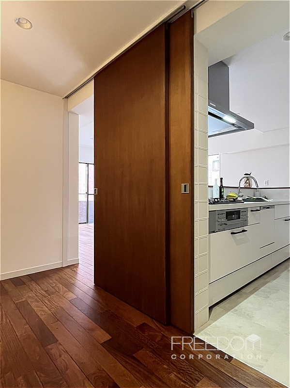 また、キッチン横の引き戸は玄関ホールへと直結。買い物帰りなどの動線もスムーズで、デザイン性だけでなく日々の使い勝手も実感できる住まいです。