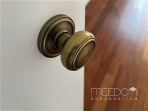 約6.9帖の洋室は、リビング同様に風合い豊かな無垢材のフローリングが広がり、ヴィンテージ調のドアノブなど細部まで端正な質感で統一されています。